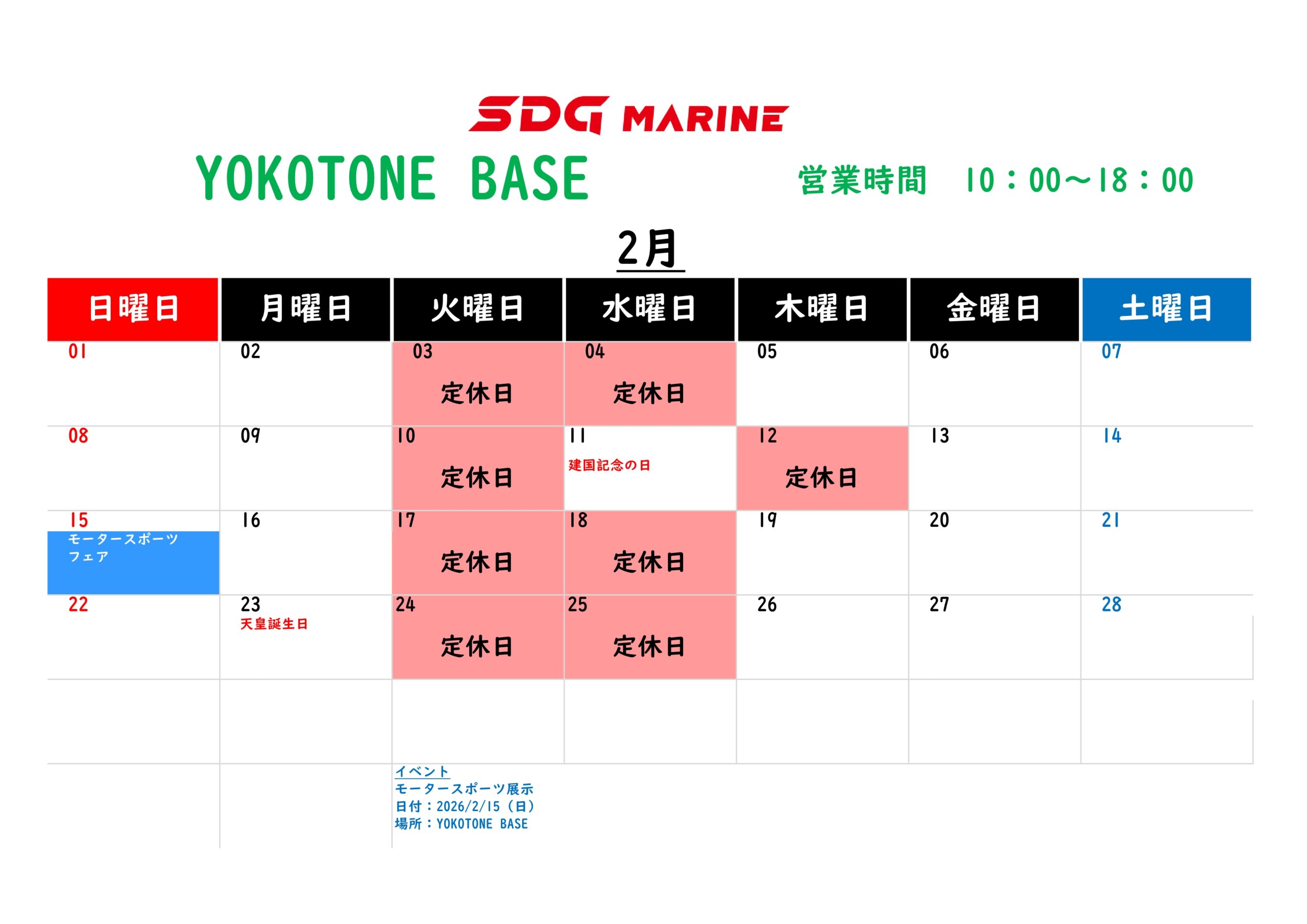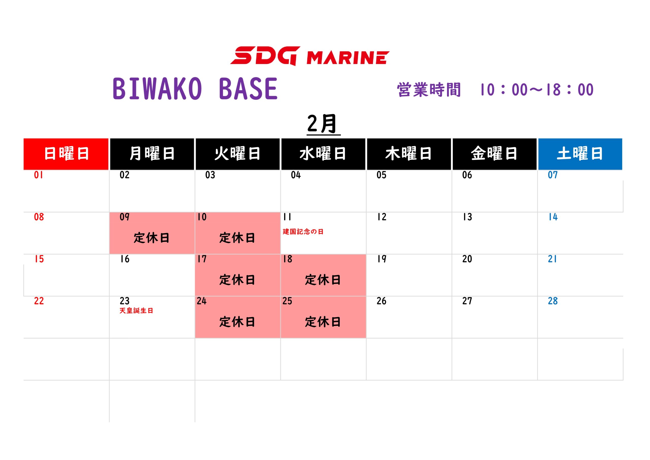 【お知らせ】2月営業カレンダー